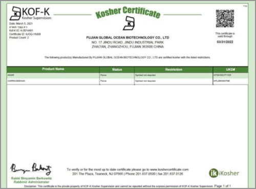 KOSHER猶太潔食認(rèn)證證書(shū)