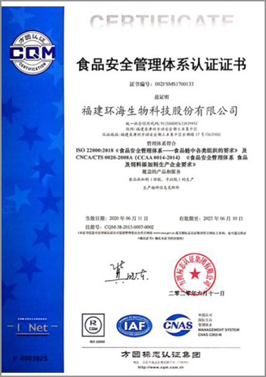 ISO22000食品安全管理體系認(rèn)證證書(shū)